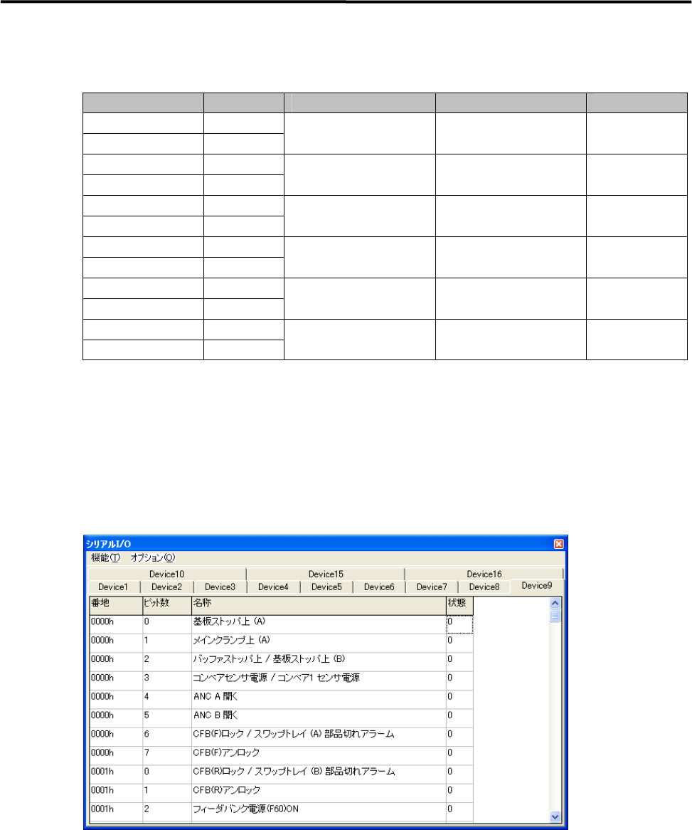 ④ 基板ストッパを下降させたい場合には、 [Device9]タブの"基板ストッパ上"の状態欄をも