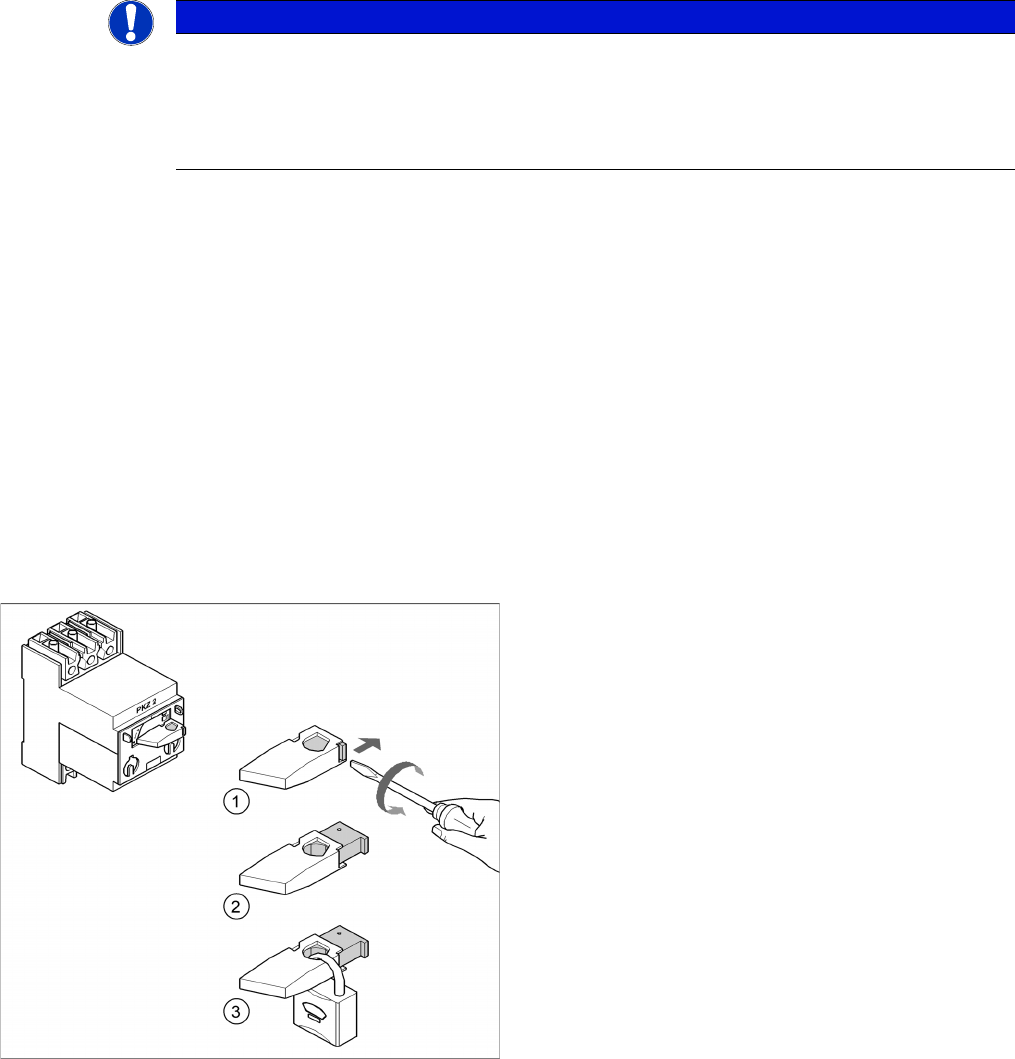 ⇨ Attach a lock wherever possible (e.g. to the main power switch or the motor contactor).