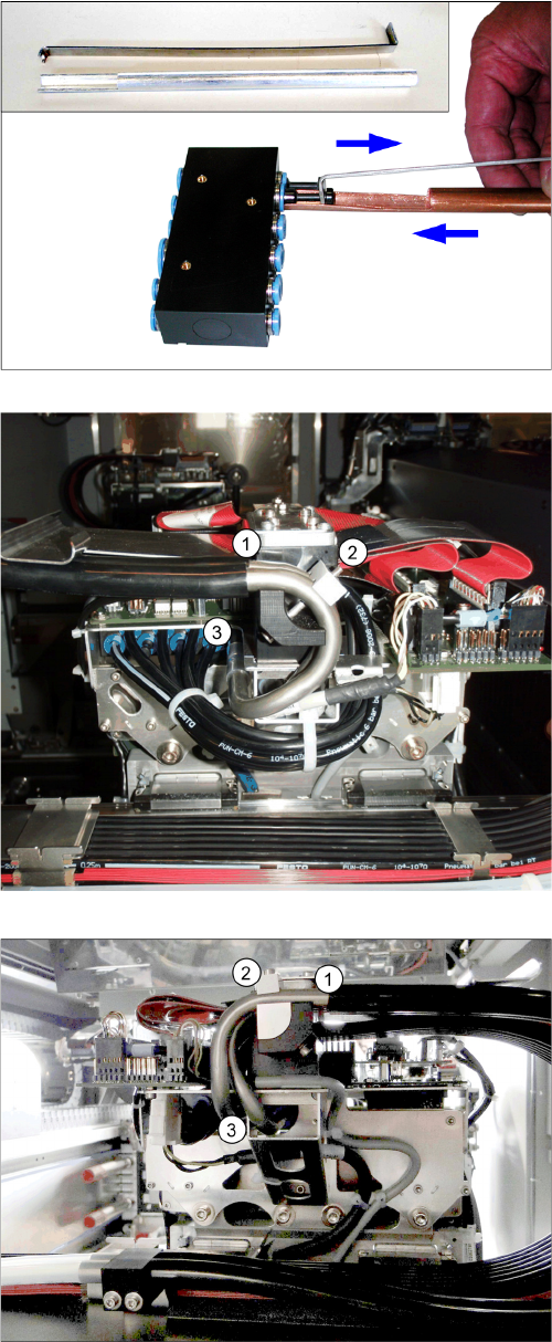 Fitting the Vacuum Pump 3.2.4 Converting the Gantries Changeover Vacuum Pump Vakuumpumpe 91 3.2.4.2 3 . 2 . 4 . 2 C o n n e c t in g T r a n s p a r e n t H o s e s Connecting Transparent Hoses Standard gantry Rotated ga…