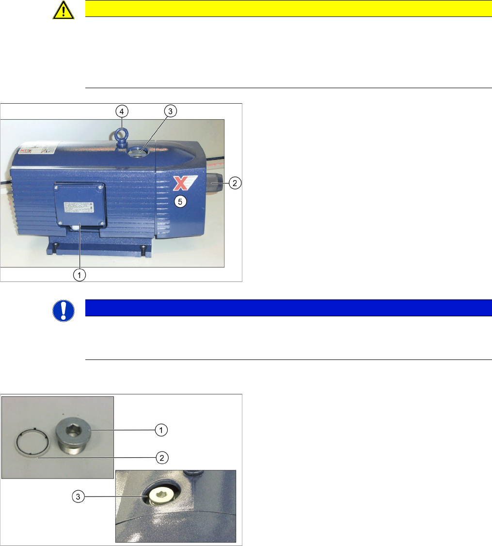 ► Never lift the vacuum pump by its front plate! The front plate of the vacuum pump is only