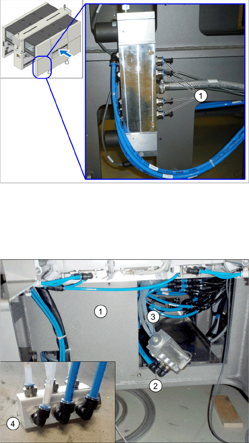 The following hose-related tasks are performed either at location 1 or 4, depending on the point of instal-