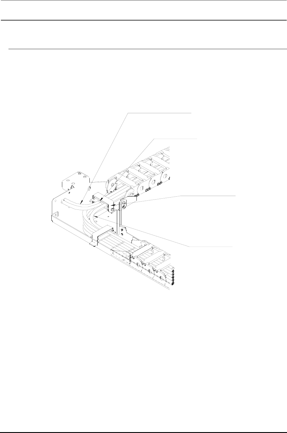 在对侧,将 拖链缆线和 拖链缆线拉至下图 的方向,于此状态下在安装架座右端