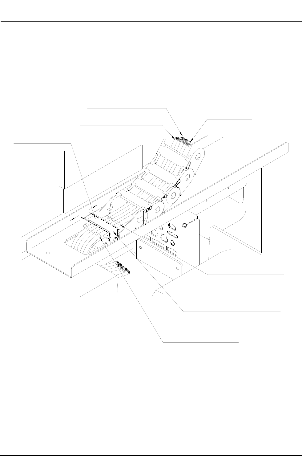 拖链缆线及空气软管在上层, 拖链缆线在下层固定。