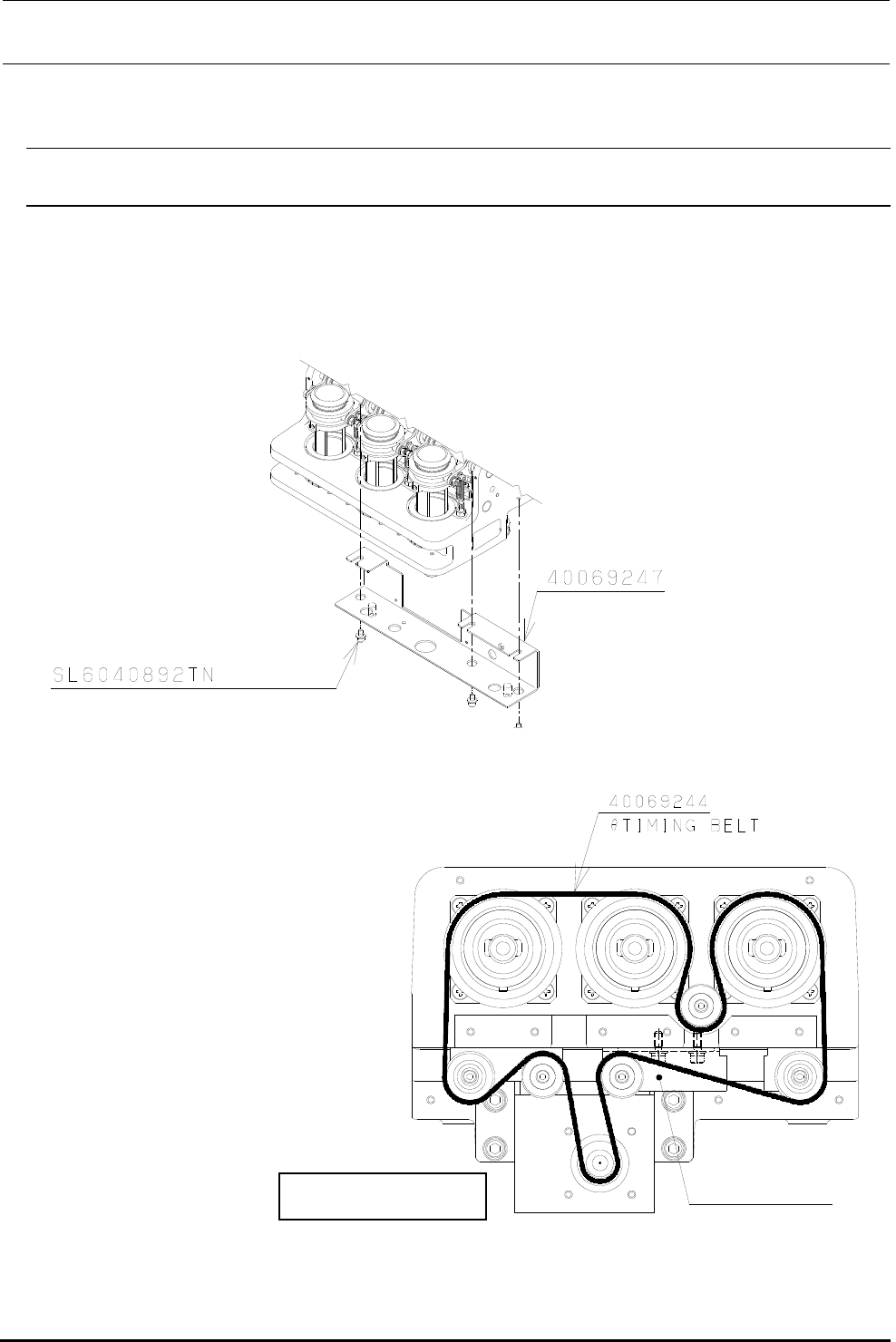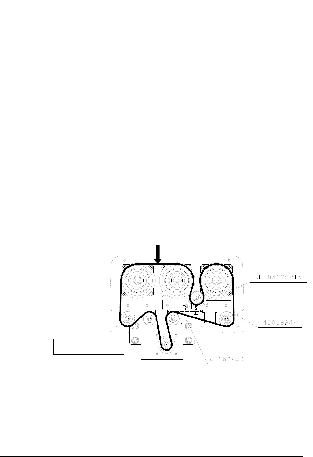 1) 请参考下图安装新皮带。(在 C,R 点胶头之间的空转皮带轮开始挂上时安装比较容易)