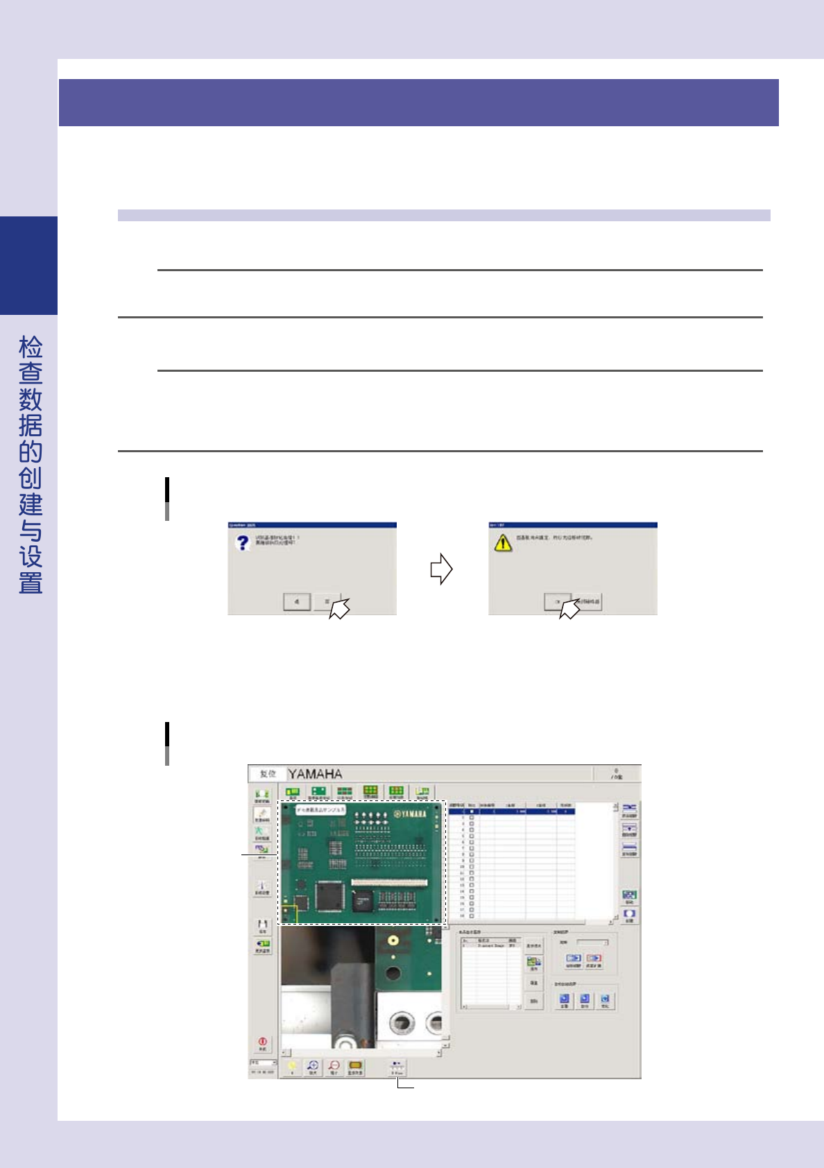 如在检查机内没有基板的状态下选择「视野编辑」或「检查对象」选项卡时,会显示如下图所示的错误警告画面。