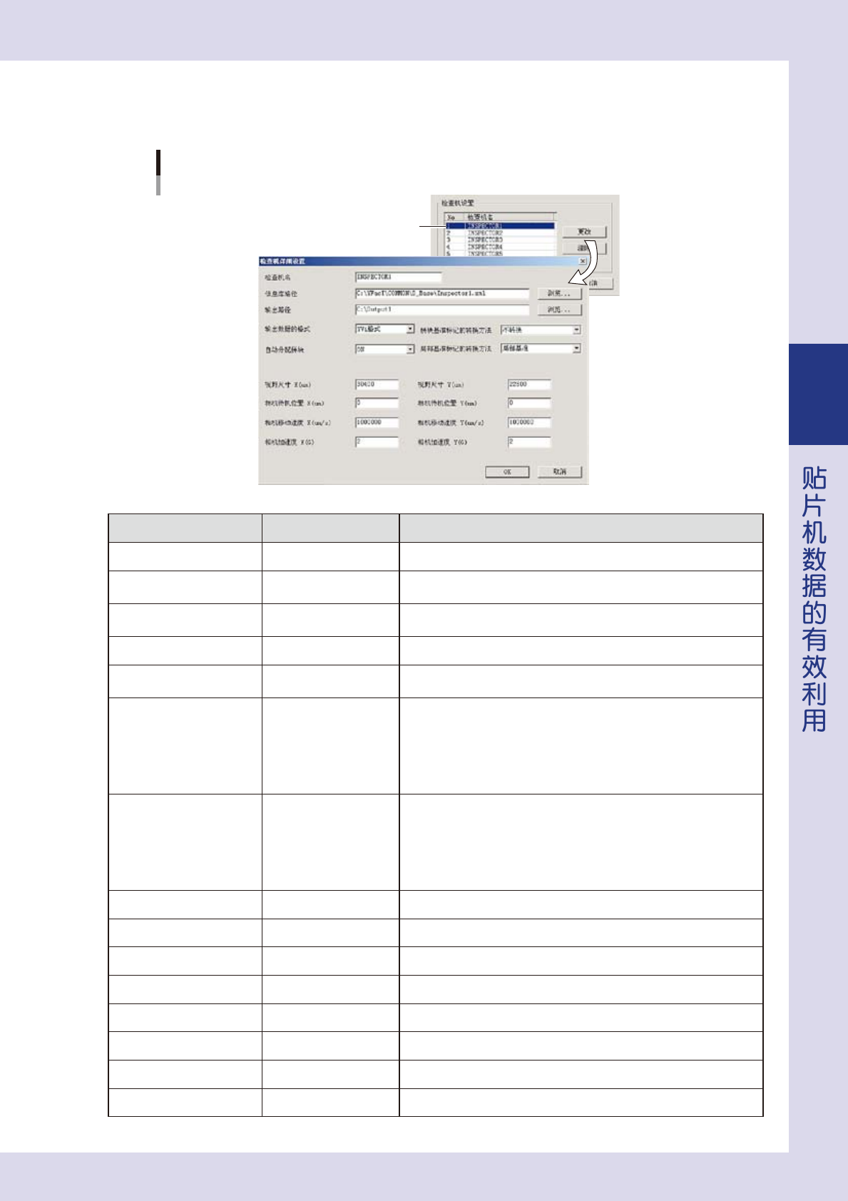 「设置转换为检查机数据」画面