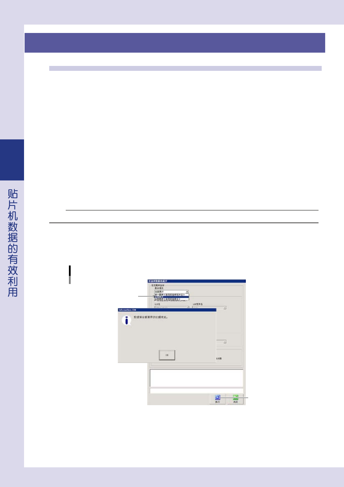3-18 3 3. 信息库的全部展开 3.1 信息库的全部展开 信息库的展开,是在检查项目为「跳过」的检查对象位置粘贴与该元件相对应的信息库的功能。 以下,介绍信息库全部展开的操作步骤。关于信息库的详细内容,参阅后述第 4 章「1. 信息库」 。 1 打开 [ 数据编辑 ]-「检查对象」画面。 2 打开「基本」参数选项卡。 3 按[展 开]按 钮 。 打开「信息库数据的展开」画面。 4 选择展开模式。 从下拉框中选择「全部展开」…