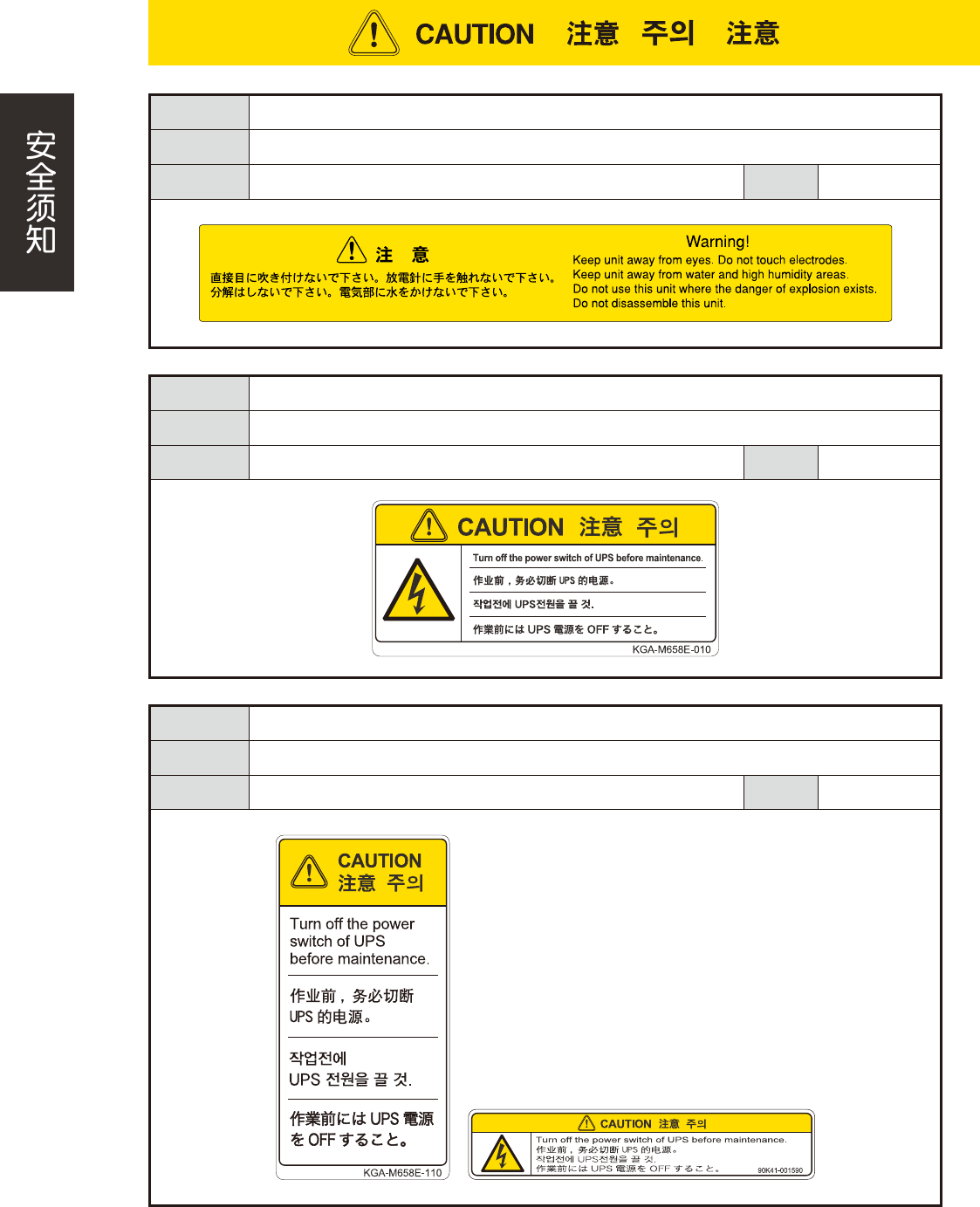 危险的防备 作业之前,务必关闭 UPS 不间断电源装置的开关。