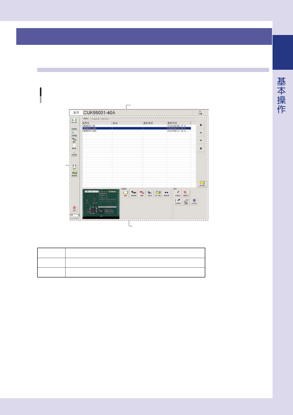 以下,介绍检查机软件画面的基本构成及其操作方法。操作机器之前,请务必阅读。