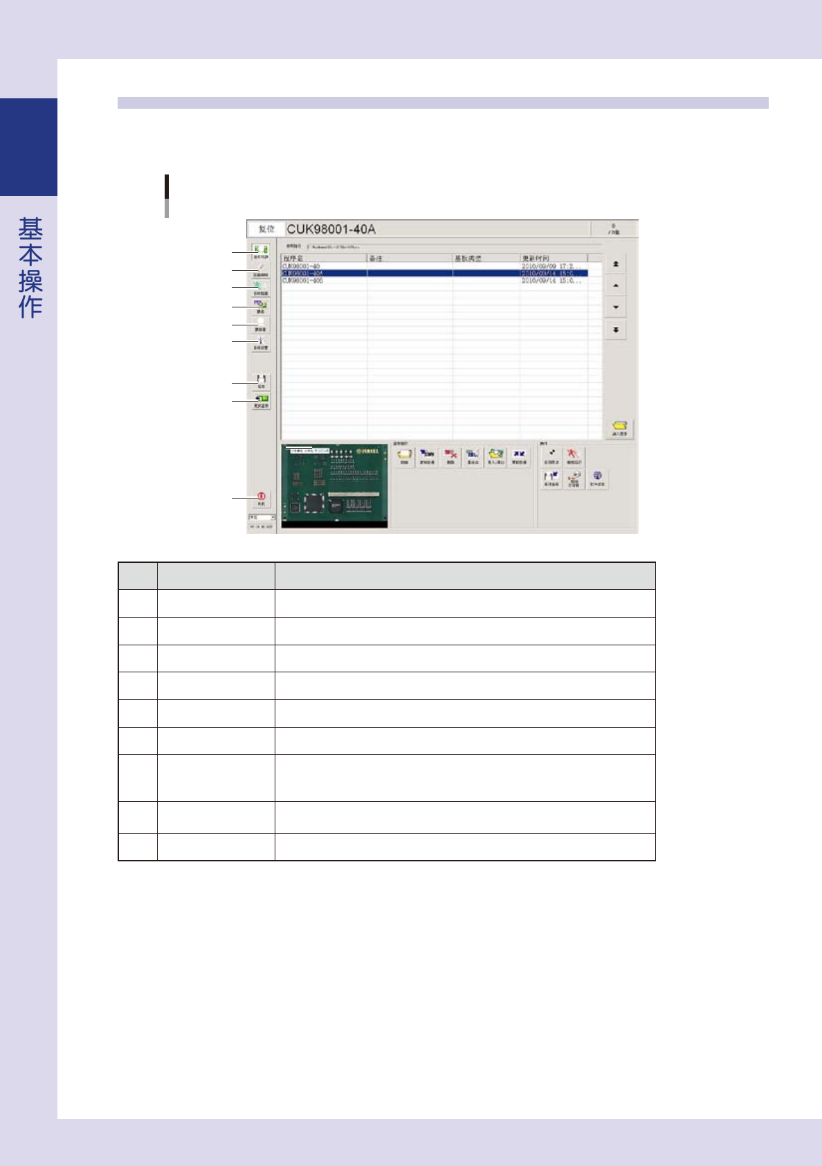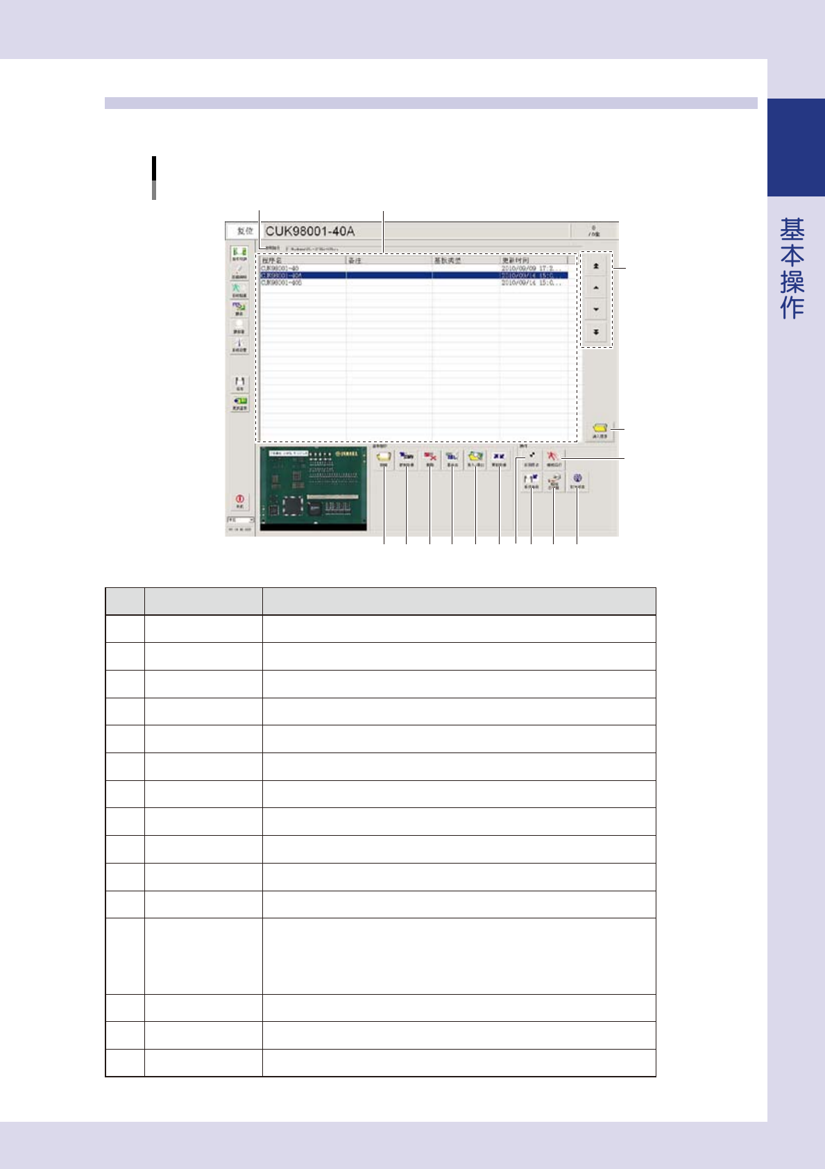 以下,介绍基板切换画面的主要功能。