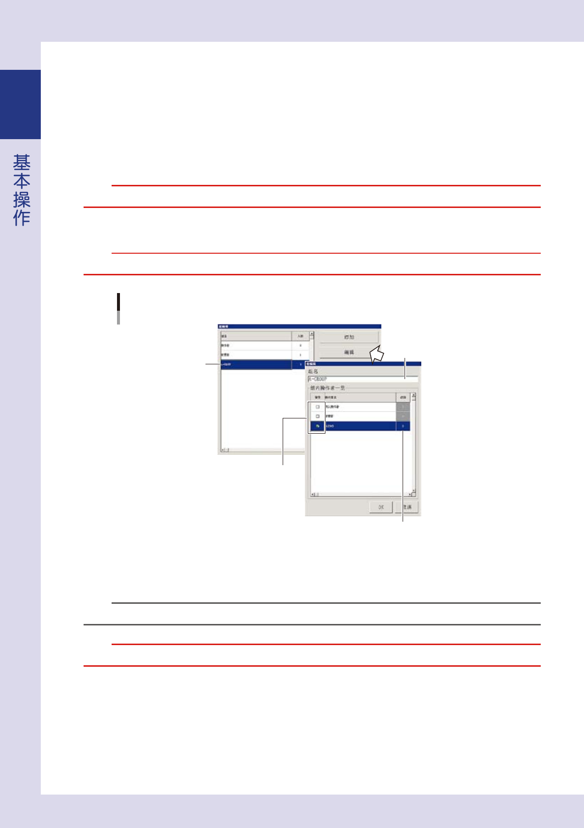 1-25 1 ■ 组的编辑 以下,介绍更改或添加组名、添加或删除操作者的方法。 n 要点 此操作仅限管理人员 ( 级别 10) 可执行。 1 按「系统设置」画面的 [ 操作者管理 ] 按钮。 显示「操作者管理」画面。 2 按 [ 组 ] 按钮,打开「组编辑」画面。 「组编辑」画面 1 3 2 26134-P9-00 1. 组名、人数 以列表形式显示登录的组名及该组的操作者人数。 2. [ 添加 ] 按钮 添加新组。在组名栏输入要登录的组…