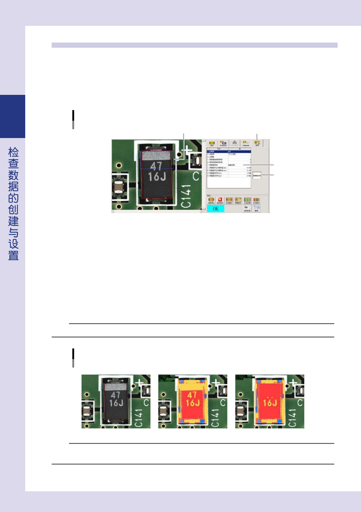 识别元件主体时,可以在有文字的位置处创建检查对象型屏蔽框后进行检查。此外,在电极间距检查中,如同时