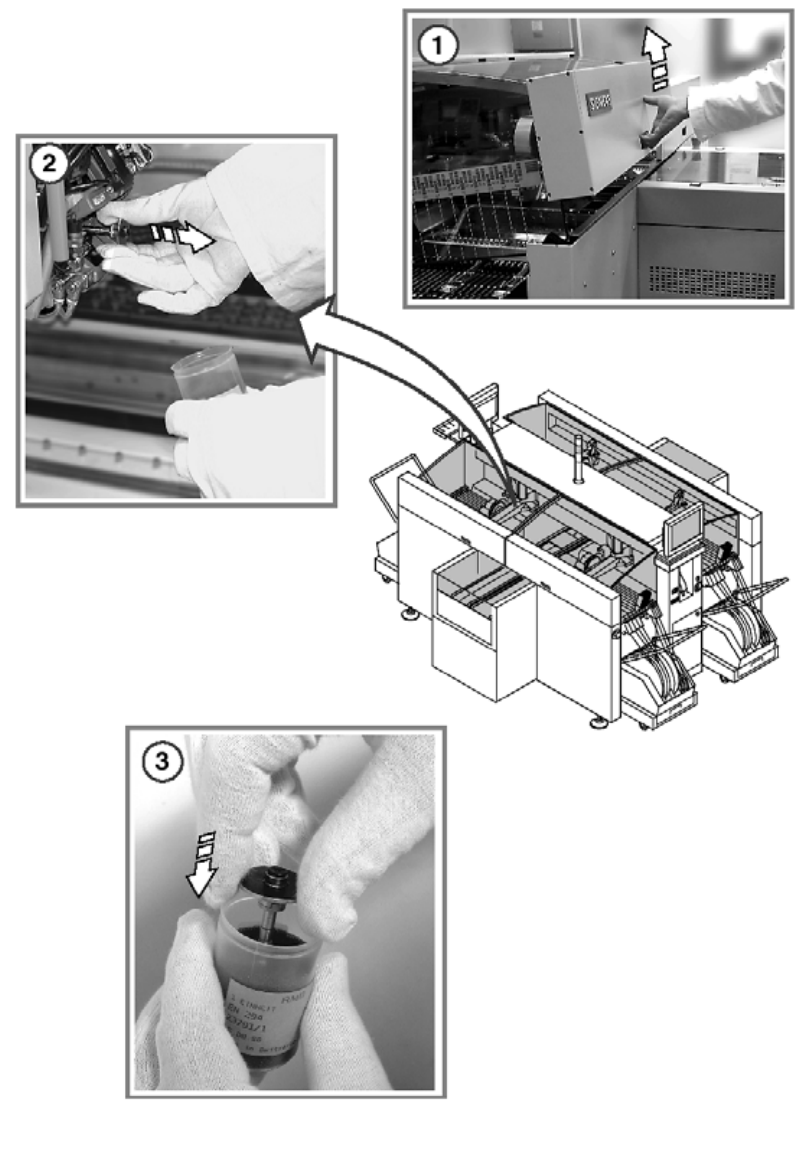 d Open the flap of the 3x8 mm S feeder (if present) and remove the components.