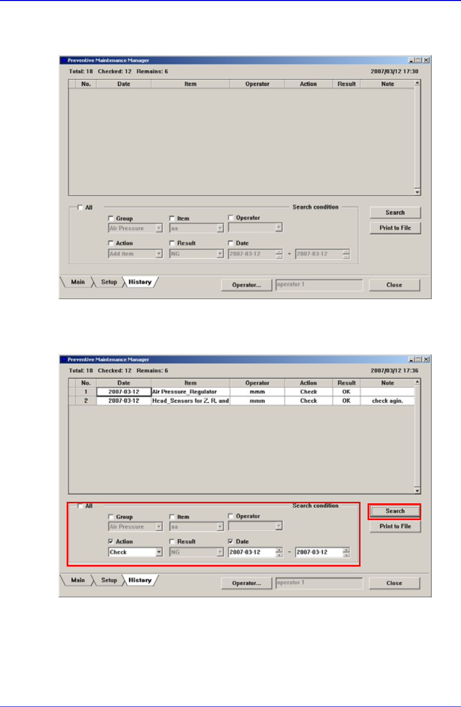 查看检查记录时,输入检查条件后点击<Search>按钮。