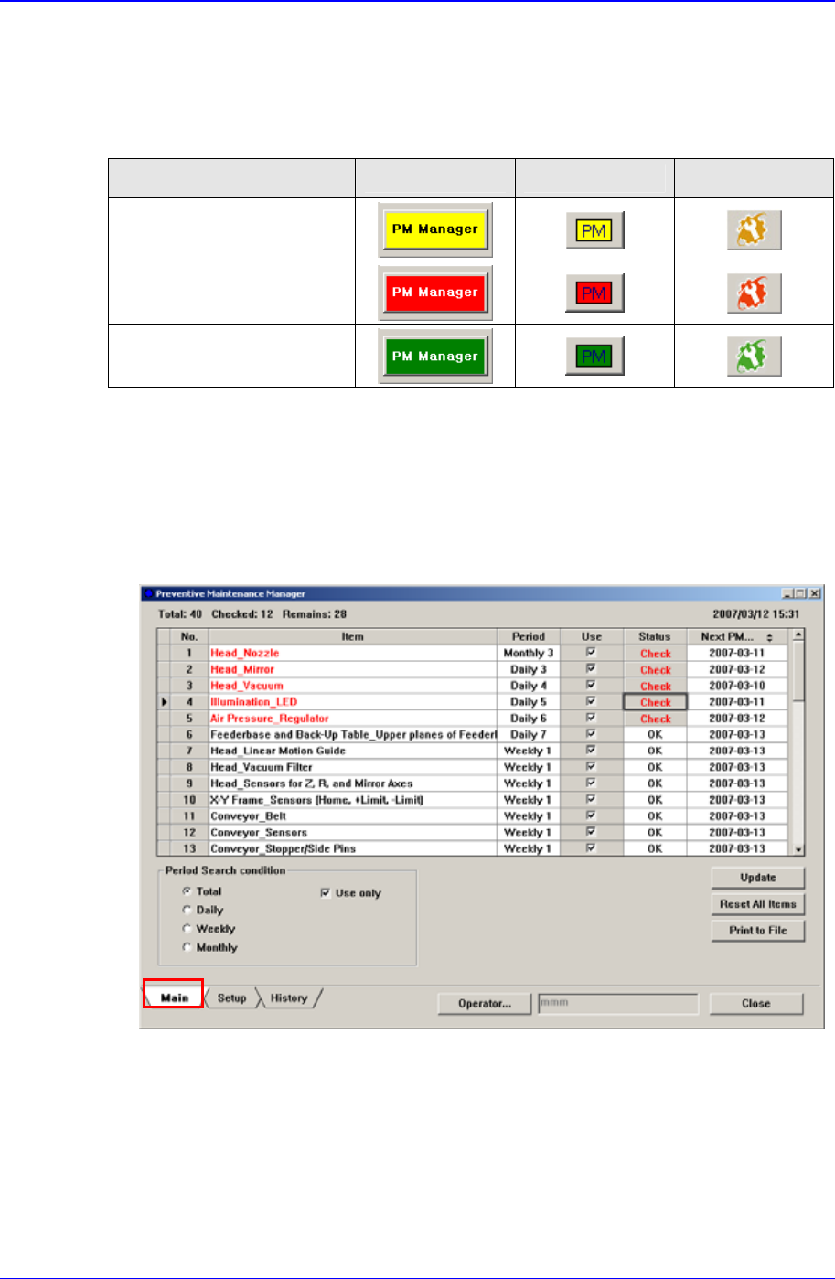 PM Manager 由 Main 画面, Setup 画面, History 画面构成。最初执行 PM Manager 时
