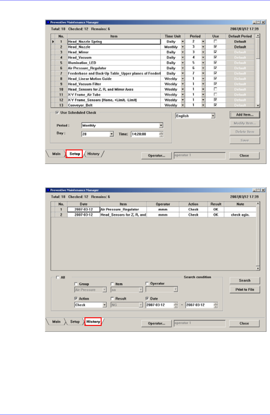 Samsung Component Placer SM421 Administrator ’ s Guide Setup 画面 图 A-5. PM Manager 的 Setup 画面 History 画面 图 A-6. PM Manager 的 History 画面 A-4