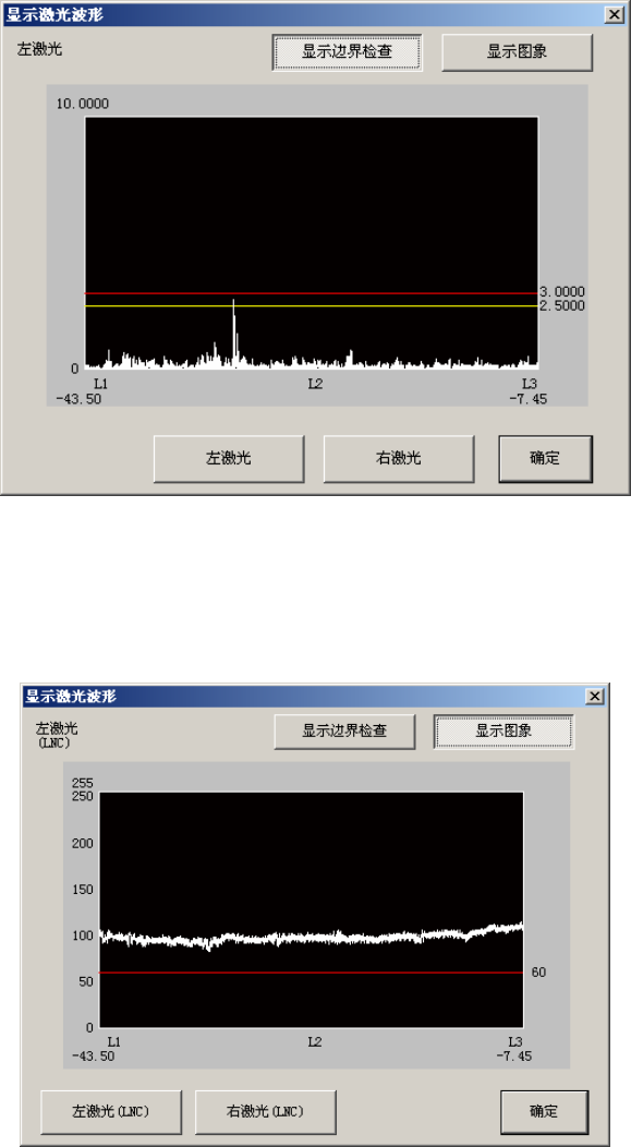 按下“左激光”按钮,可显示左激光的图像波形的结果。