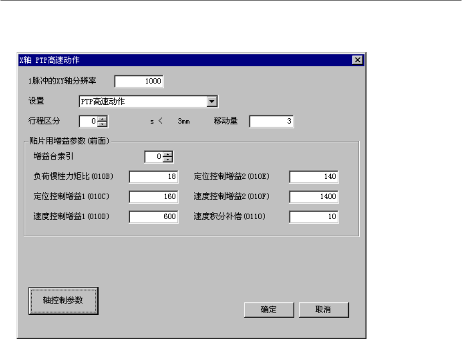 YY台时 PTP 动作的控制参数设置画面(图图 4.2-2) : [增益参数]按键