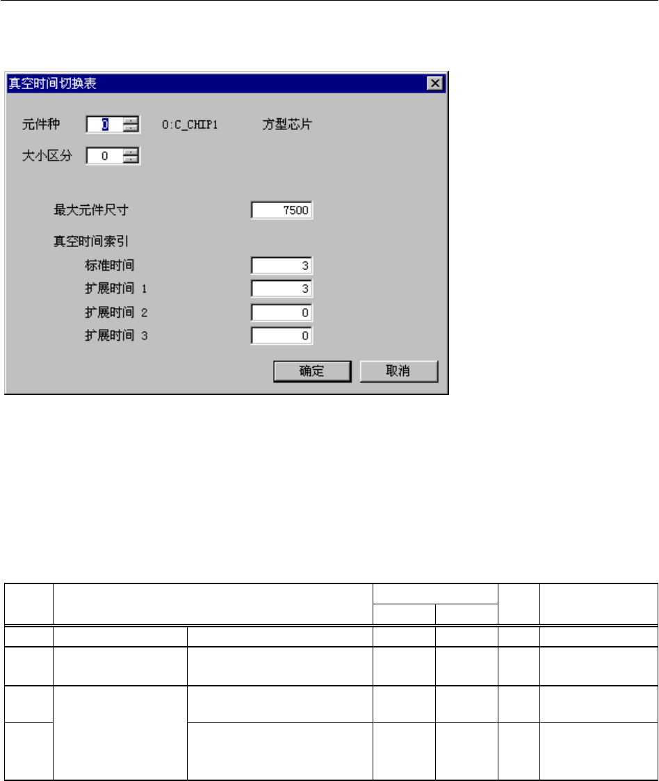 菜单: [输入]→[其他]→[真空]→[真空时间切换表]