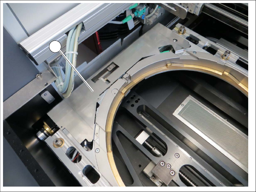 Betriebsanleitung SIPLACE Wafer System (SWS) 6 Optionen Ausgabe 02/2018 6.3 SWS Wafer Stretcher (Expander) 133 Hubring mont ieren 6 Abb. 6.3 - 16 Wafer - Aufnahme - Hubring montieren Legen Sie den Hubring (1) ein. S …