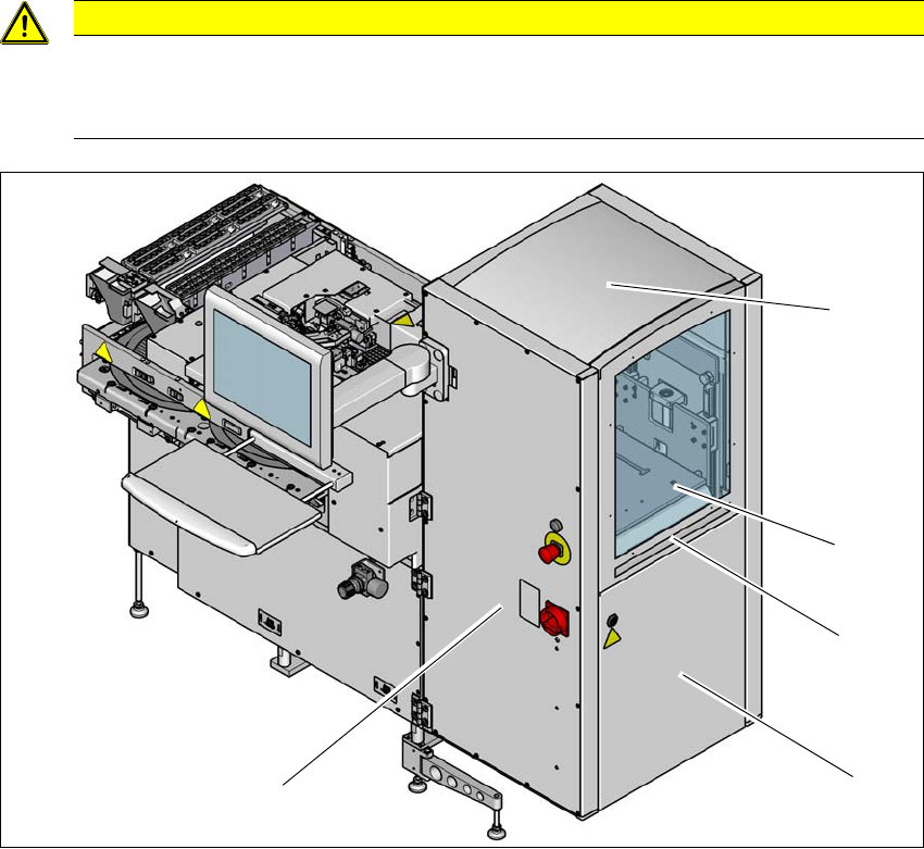 Die Schiebetür und Abdeckungen dienen als trennende Schutzeinrichtung und verhindern einen