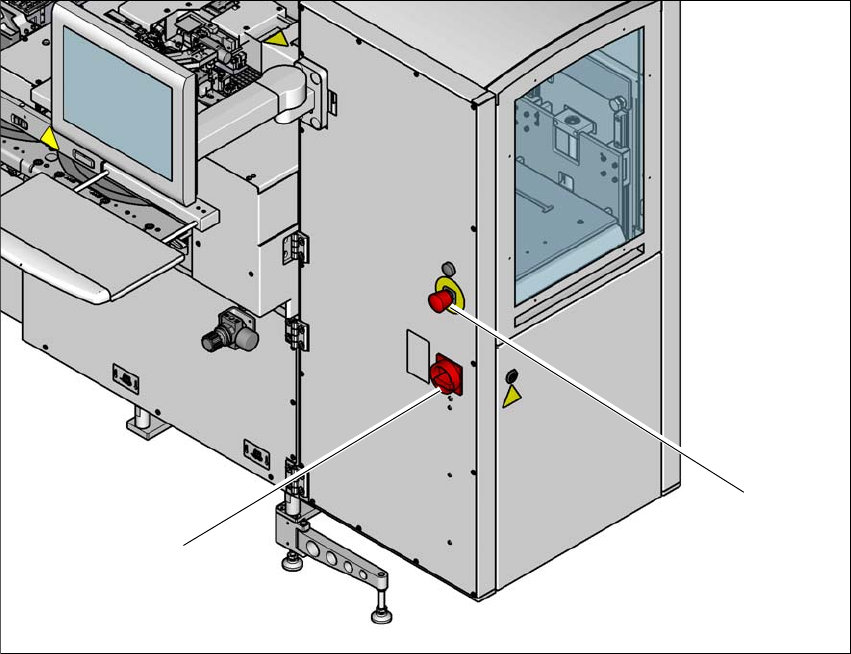 Abb. 2.6 - 2 Lage von NOT-HALT-Taster und Hauptschalter am SWS