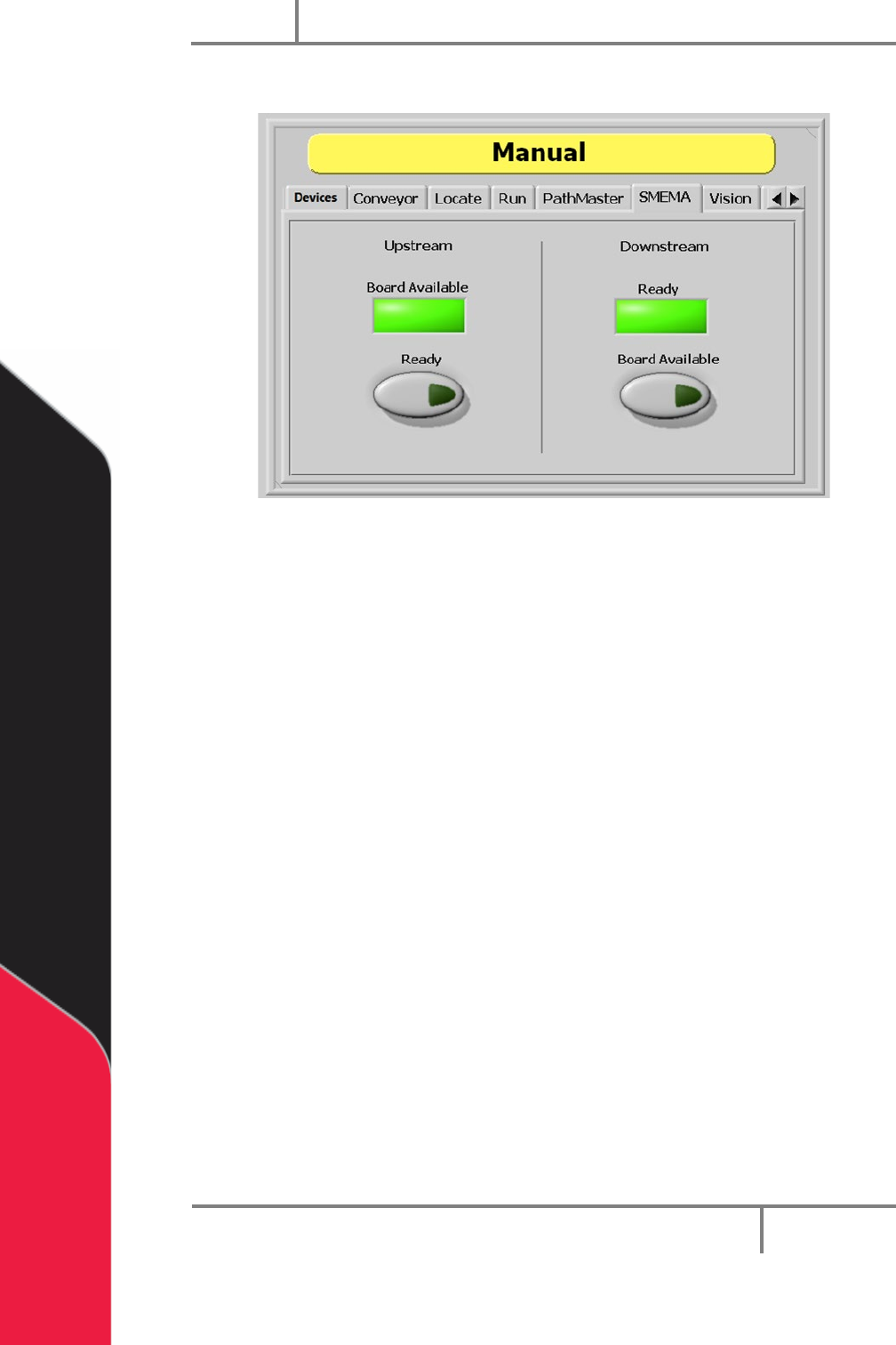 Portal PVA Revisio n H ( 2018 ) 27 of 93 6.6 SMEMA Statu s Fig ure 15 : SMEMA St atus, Manual Mode When the workcell is put in - line, SMEMA signals communicate with upstre am and do wnst ream machi nes. You can che ck t…