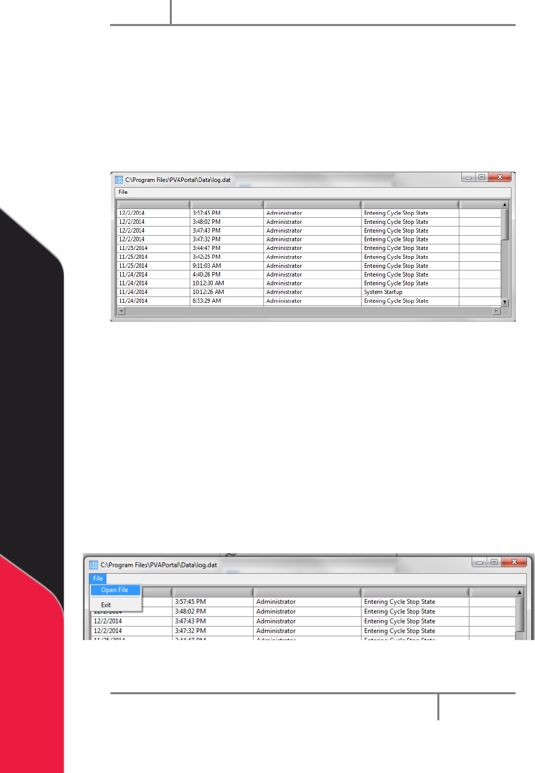 Portal PVA Revisio n H ( 2018 ) 66 of 93 Fig ure 64 : Lo g File Sele ctio n 3. For the e m bedded vers ion, press and hold the ‘ CT RL’ key while ‘ double click ing’ the data grid to select a log file to view. The Standa…