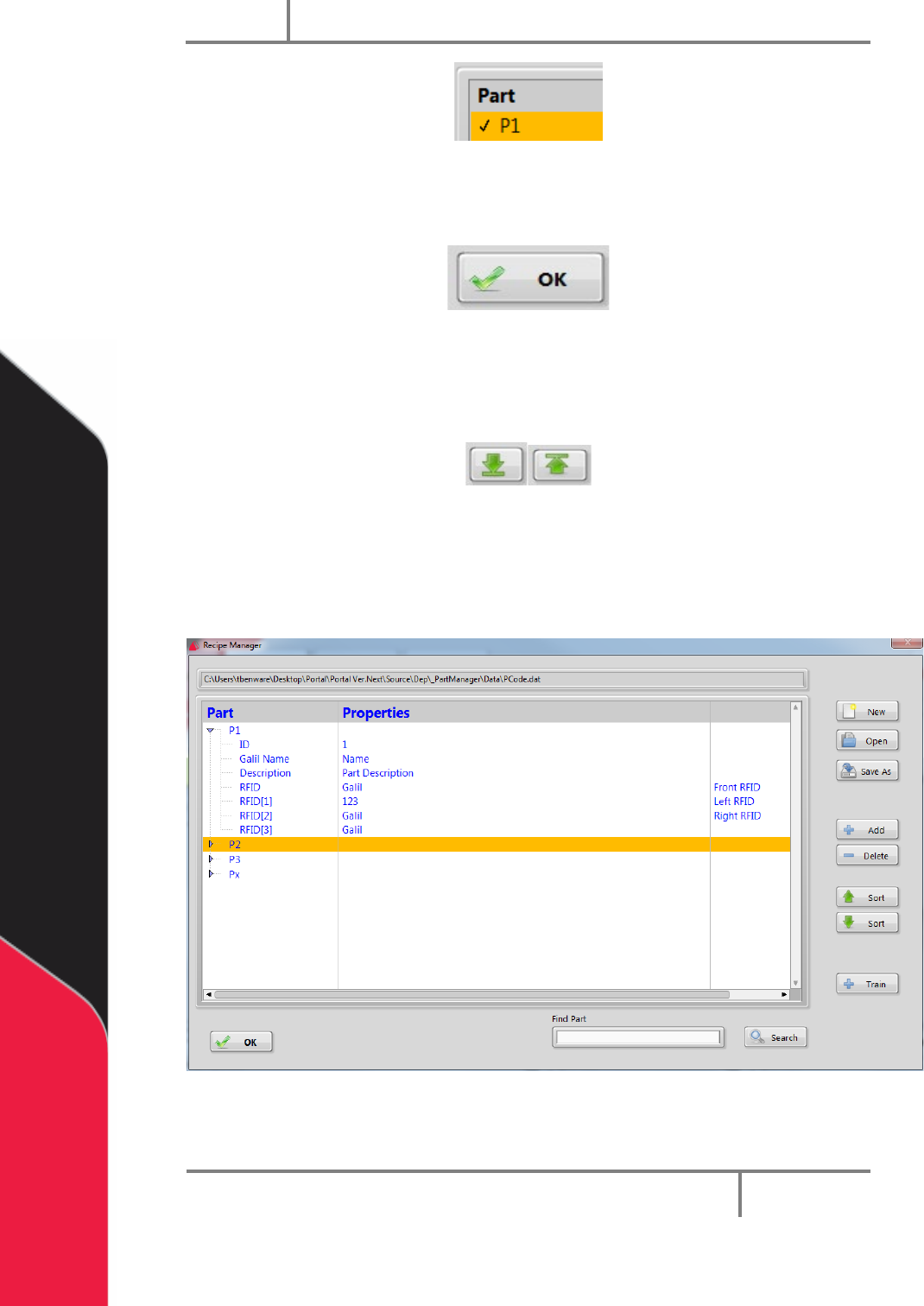 8. Select “Train” to add a new part record based on a trained part code.