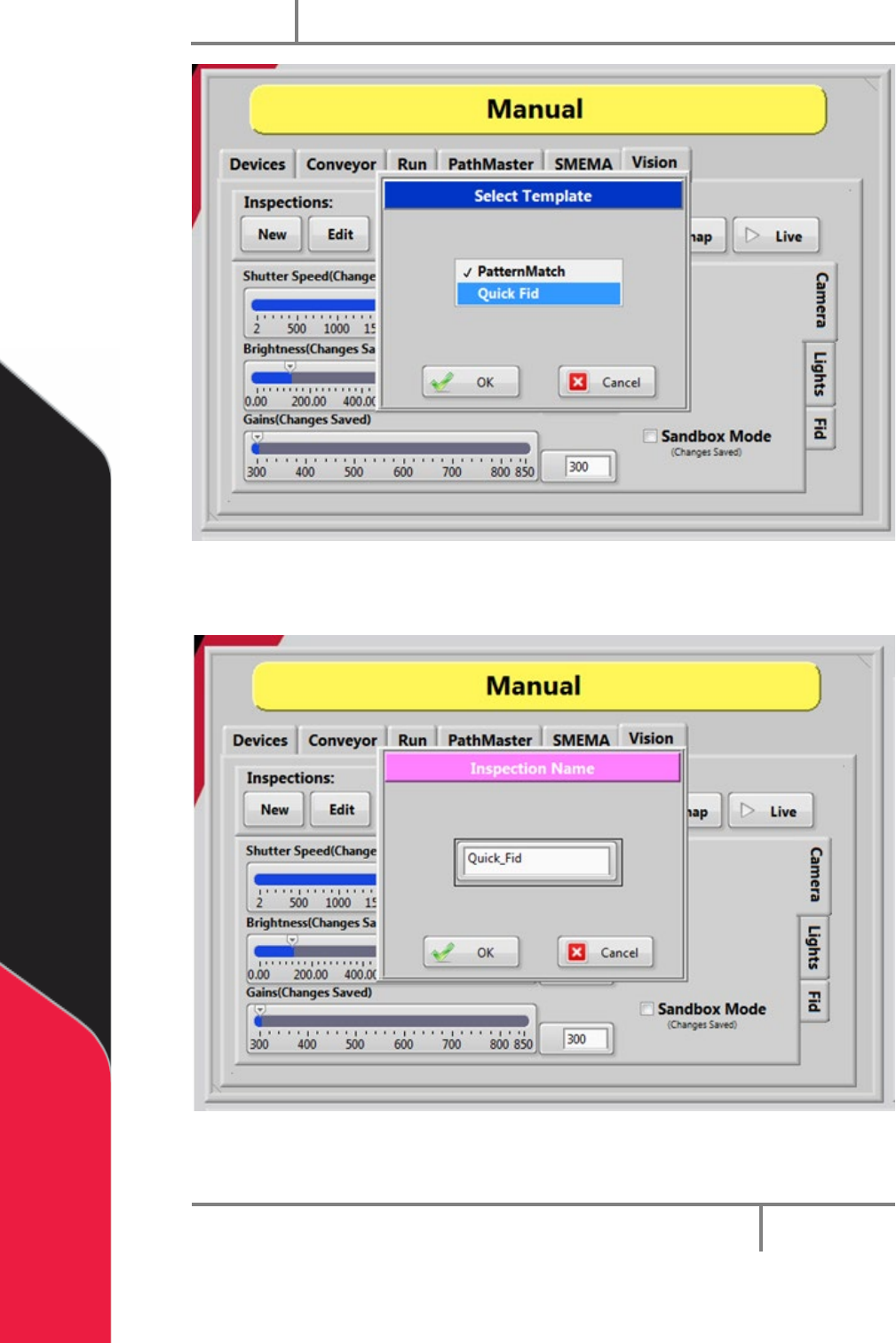 5. Give the Quick Fid inspection a unique name and then click “OK”.
