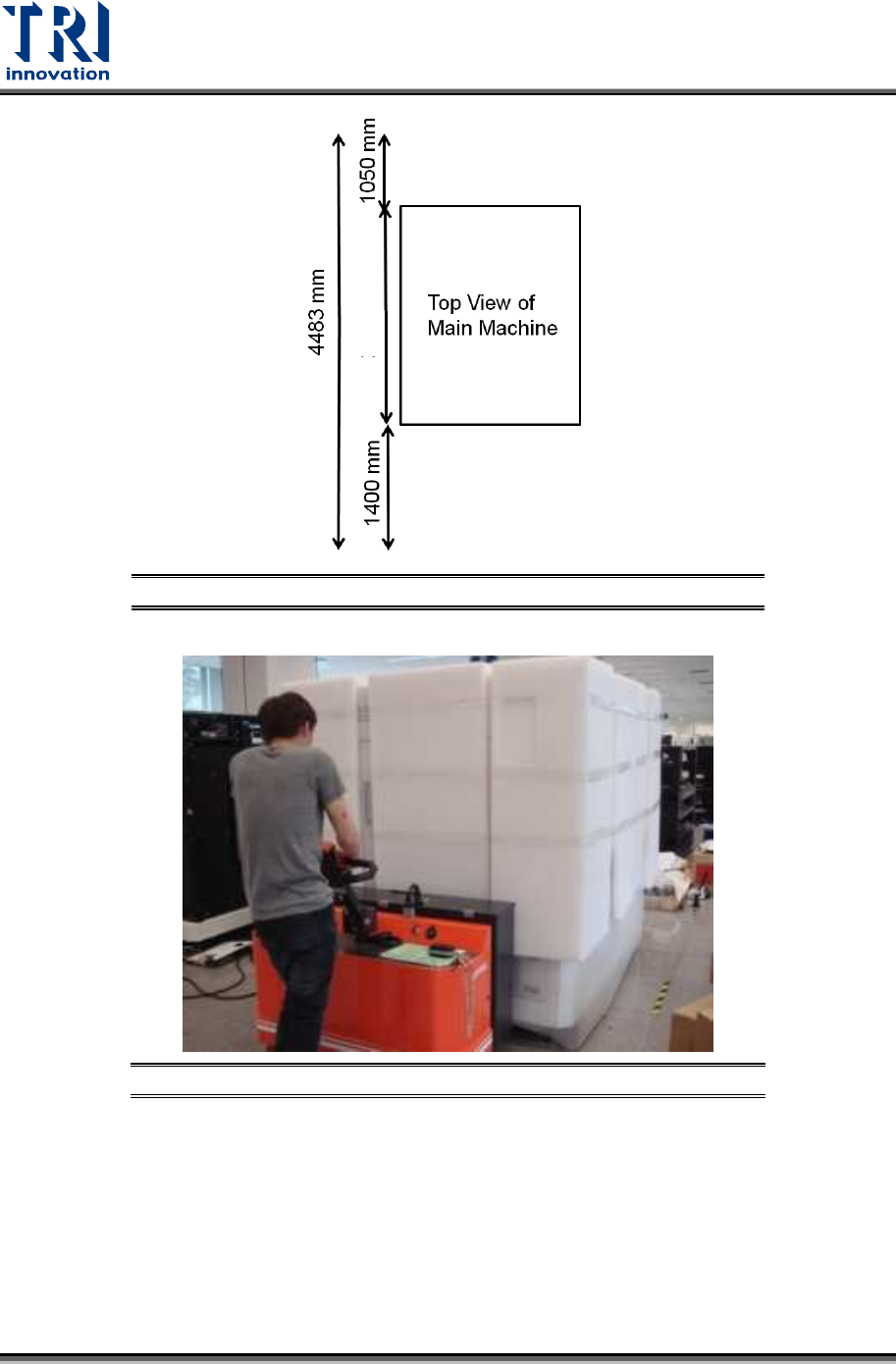 Test Research, Inc . 11 TR7600 SIII Ser ies User G uide – Ins tallation Figure 18: Reserved Space for Dail y Operation Figure 19: Put the M achine In The Right Position 17) Remove the remaining packing materials. 18) Adj…