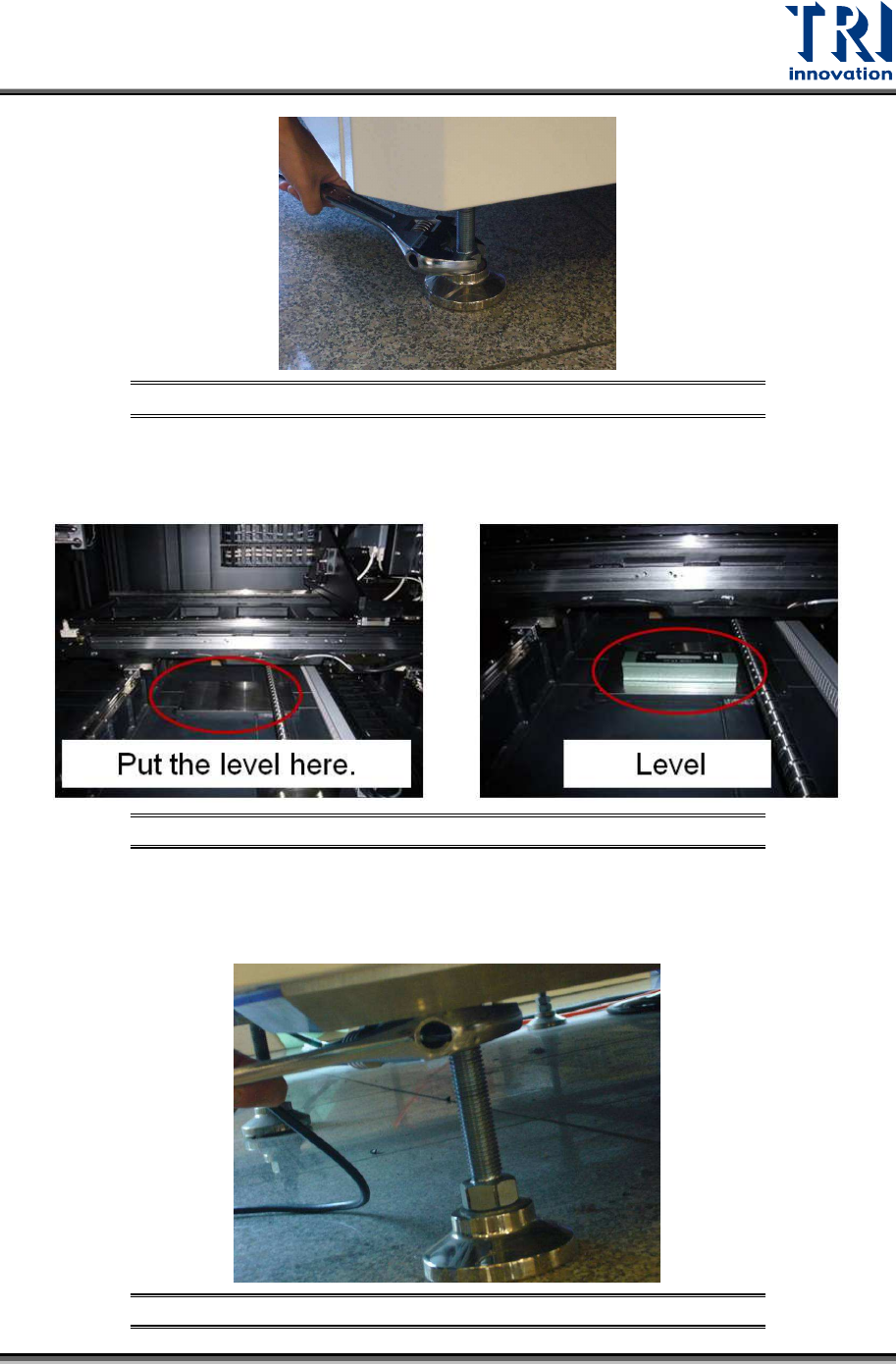 19) Put the level at the bottom side of the machine and adjust the height of pads to make