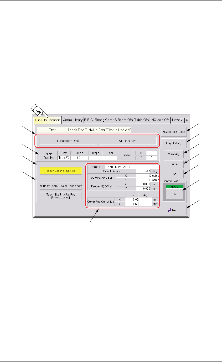 When the [Tray Teach Ecc. Pick-Up Pos. [Pickup Loc. Adj.]] button is
