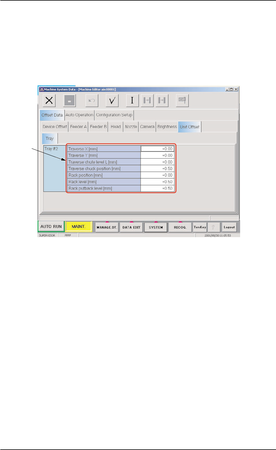 When the "Unit Offset" tab is selected in the "Offset Data" tab sheet
