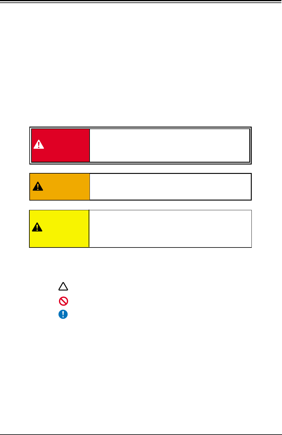 • The following warning signs are classified into three categories ac-