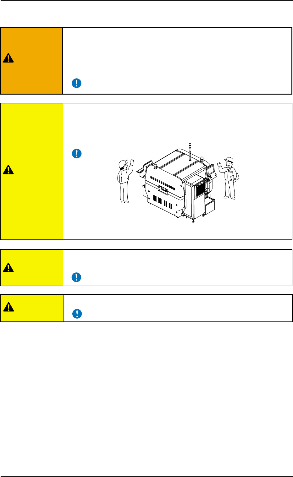 • Ensure personnel (part of body and clothes) and foreign objects remain