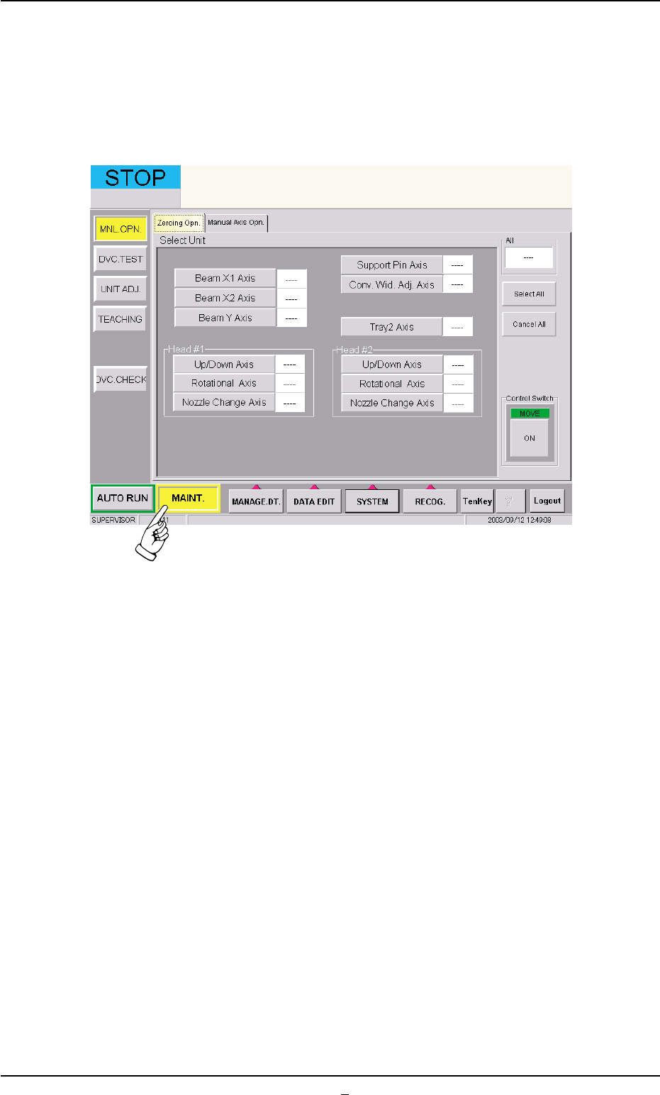 When the [MAINT.] button on the main menu bar is pressed, the fol-