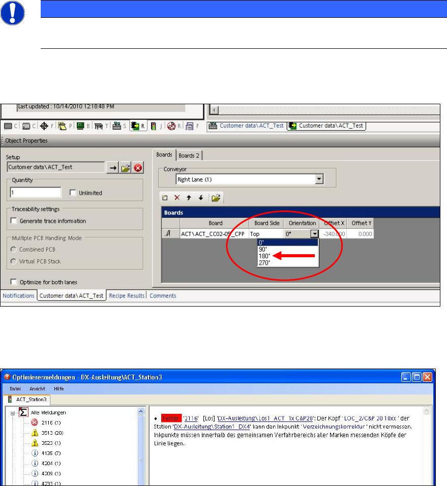 If this adaption of the board orientation is not performed, the following error message (example) is