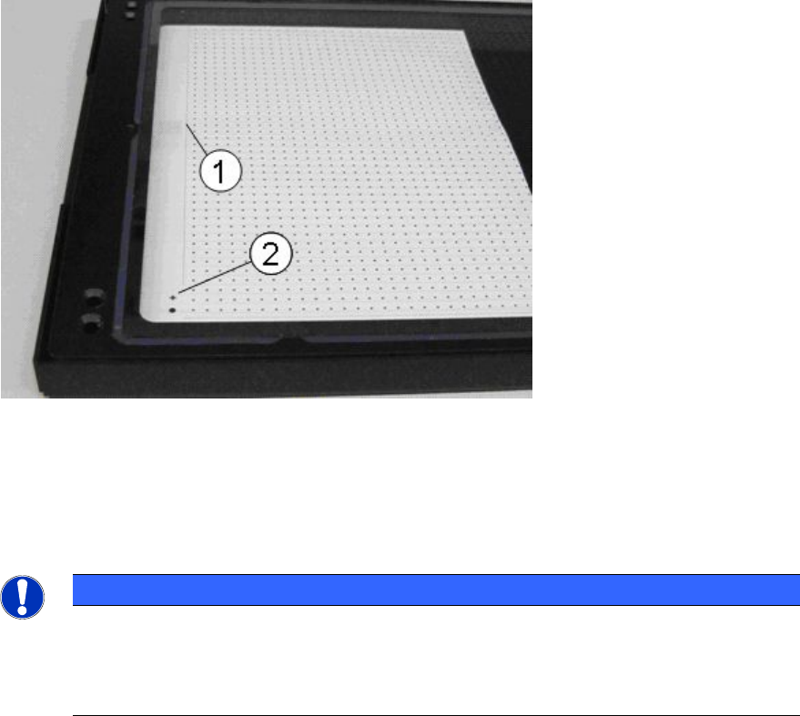► Achten Sie darauf, dass die globalen Passmarken (2) frei von der Folie bleiben.