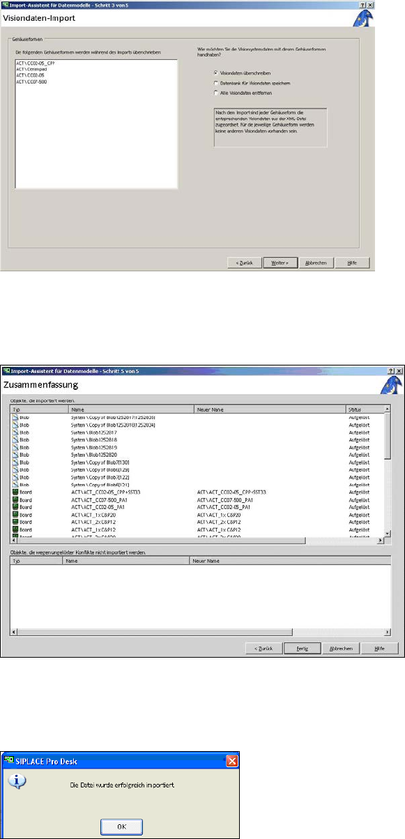 ACT - Accurac y Check T ool / Bed ienungs anleitung Ausgabe 07/2014 21 Folgend e Maske er scheint : Abbildung 3- 14 : V isiondaten - I mpor t ► Aktivier en Sie d ie Optio n Visiondate n überschreibe n . ► Klick en Sie au…