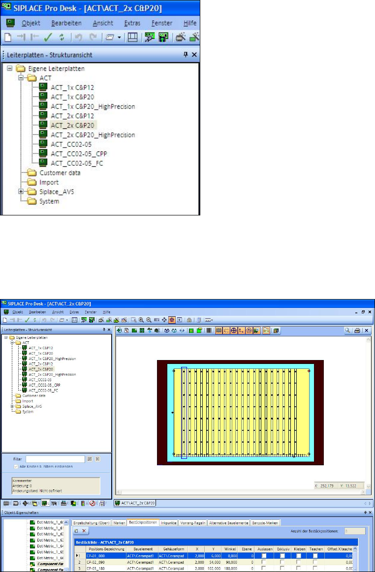 Abbildung 3-18: Beispiel: Leiterplattenbeschreibung für ACT unter SIPLACE Pro für 2xC&P20