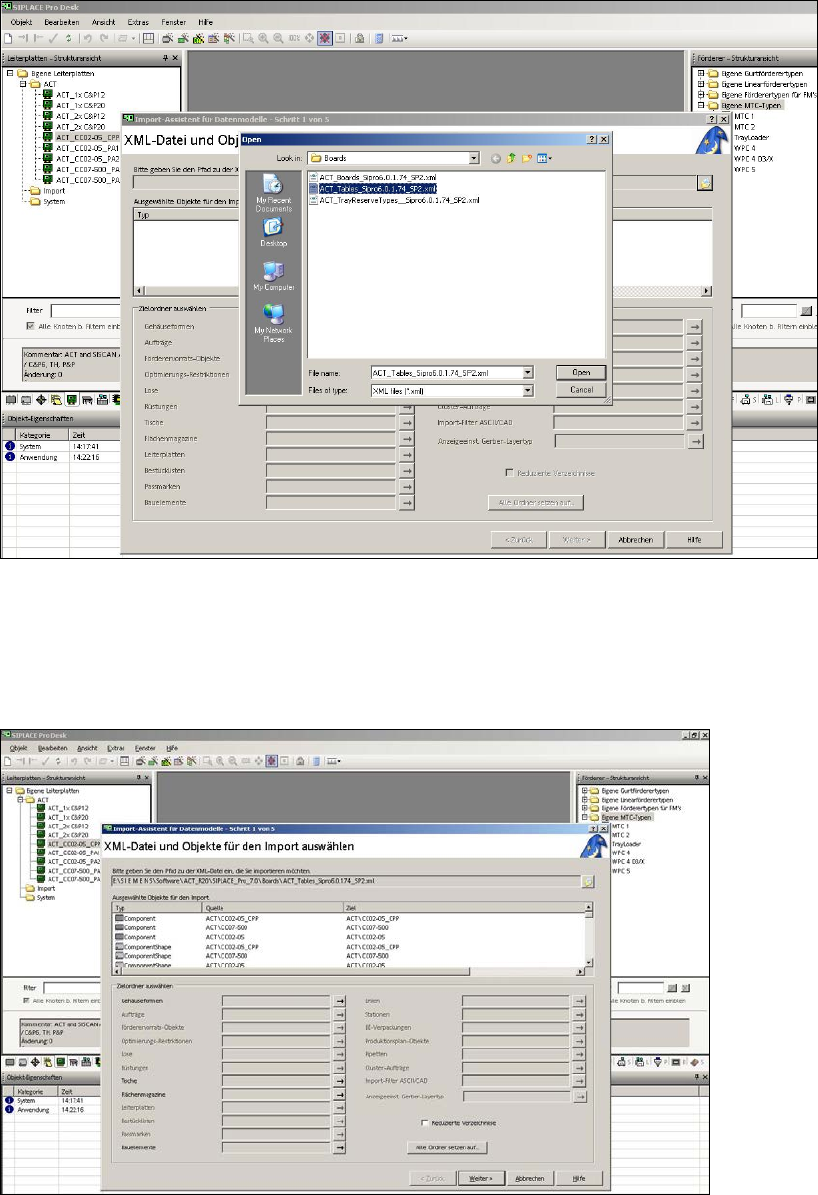 Abbildung 3-21: Import XML-Datei für Tische unter SIPLACE Pro