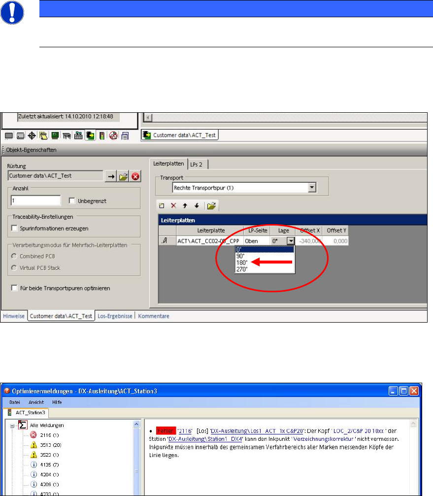 vorgegeben wird, muss im erzeugten Los die Orientierung (Lage) der Platte auf 180° umgestellt