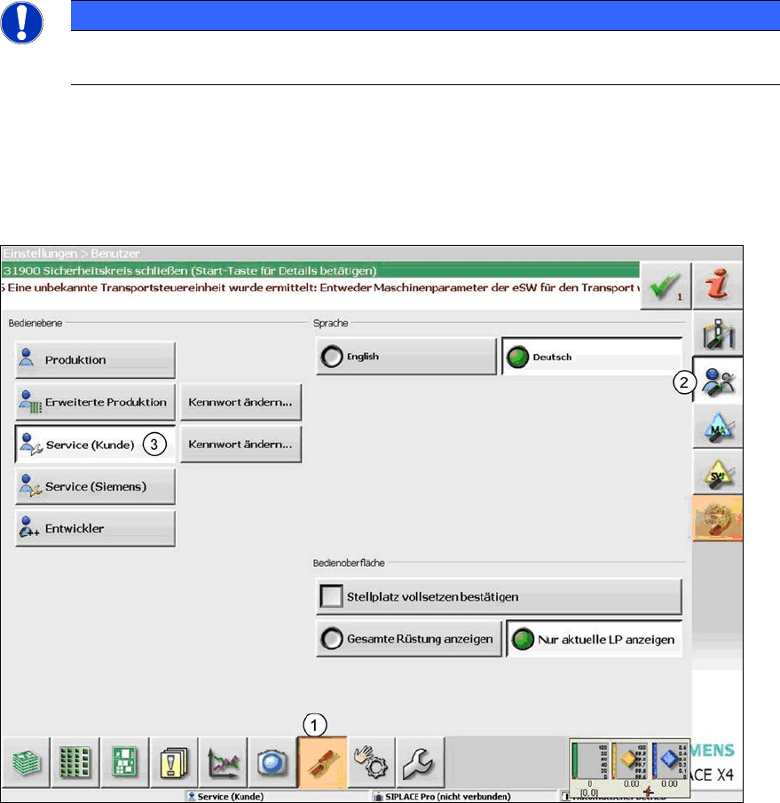 ► Wechseln Sie in die Ebene Service (Kunde) (3).