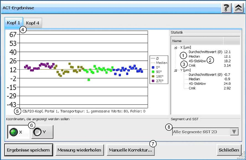 Es werden jeweils die Marken angezeigt, die gerade vermessen werden.