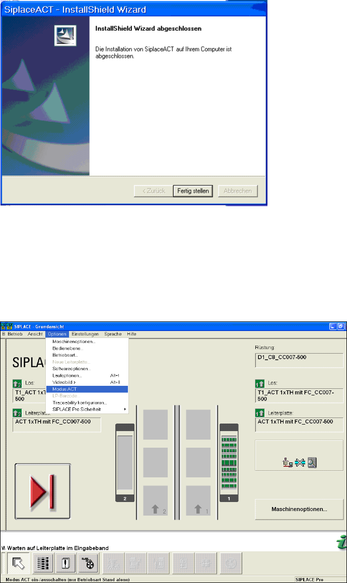 ► Klicken Sie auf Fertig stellen, um die ACT-Installation zu beenden.
