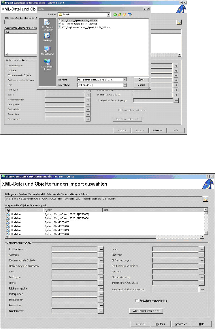 ACT - Accurac y Check T ool / User Manual 07/2014 Edit ion 19 3.2.4 Importing Boards i n SIPLACE Pro ► Select th e appropr iate f older to your softw are. ► Click on the f ile with the board pr ogram s on the ACT CD ( Fi…