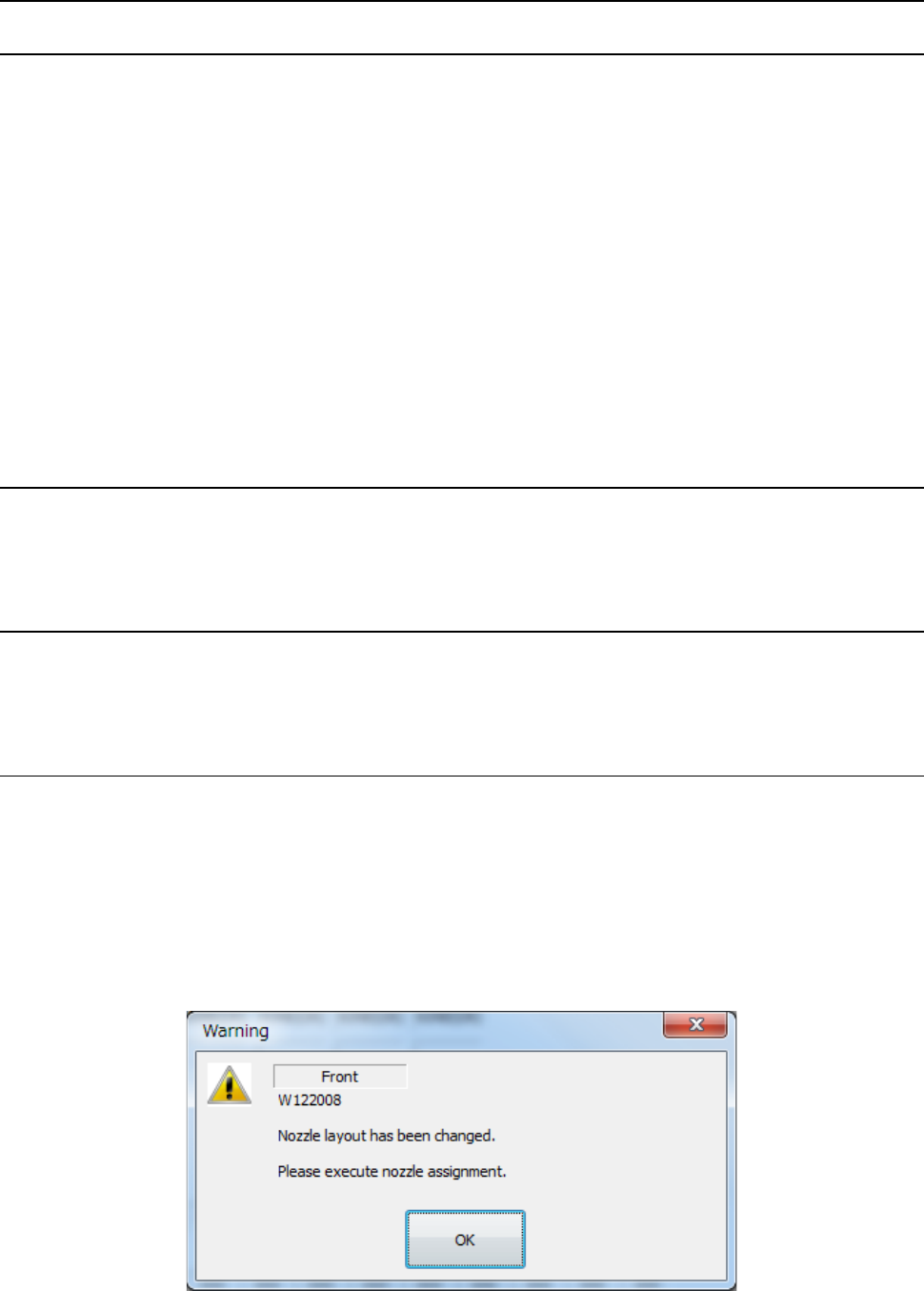 Then, the following message appears on the screen. If any nozzle is moved by semi-automatic