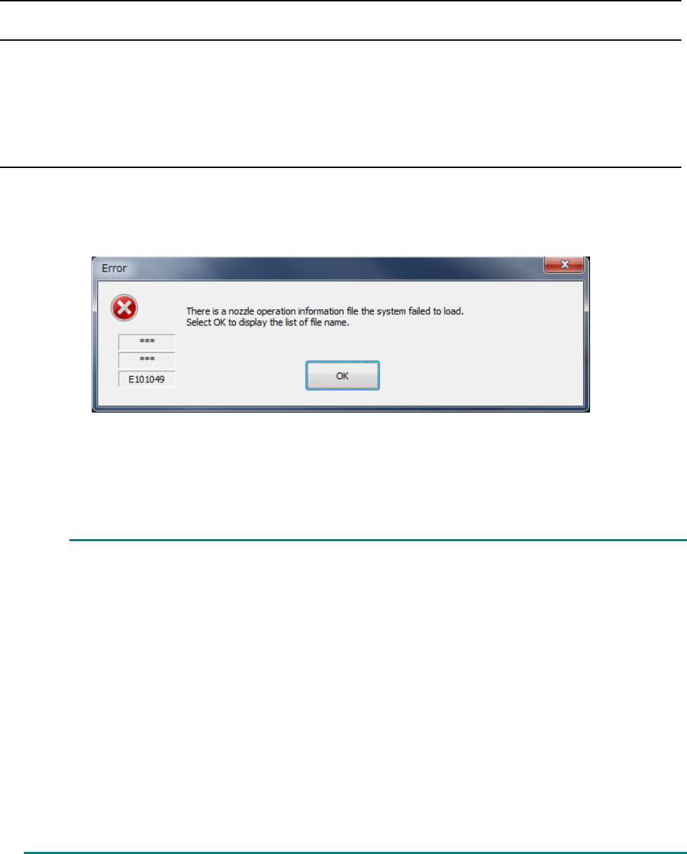 When you select<OK>, the name of the nozzle operation information file the system was not able to