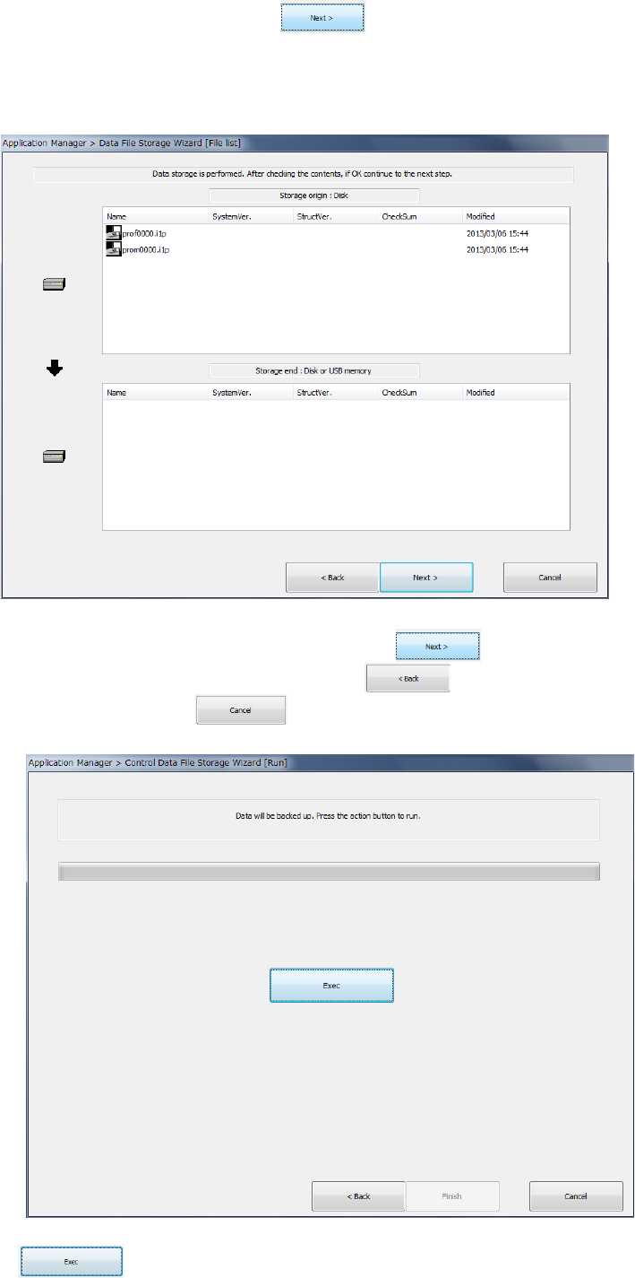 (The screen shown below as an example indicates that control data will be saved on the hard